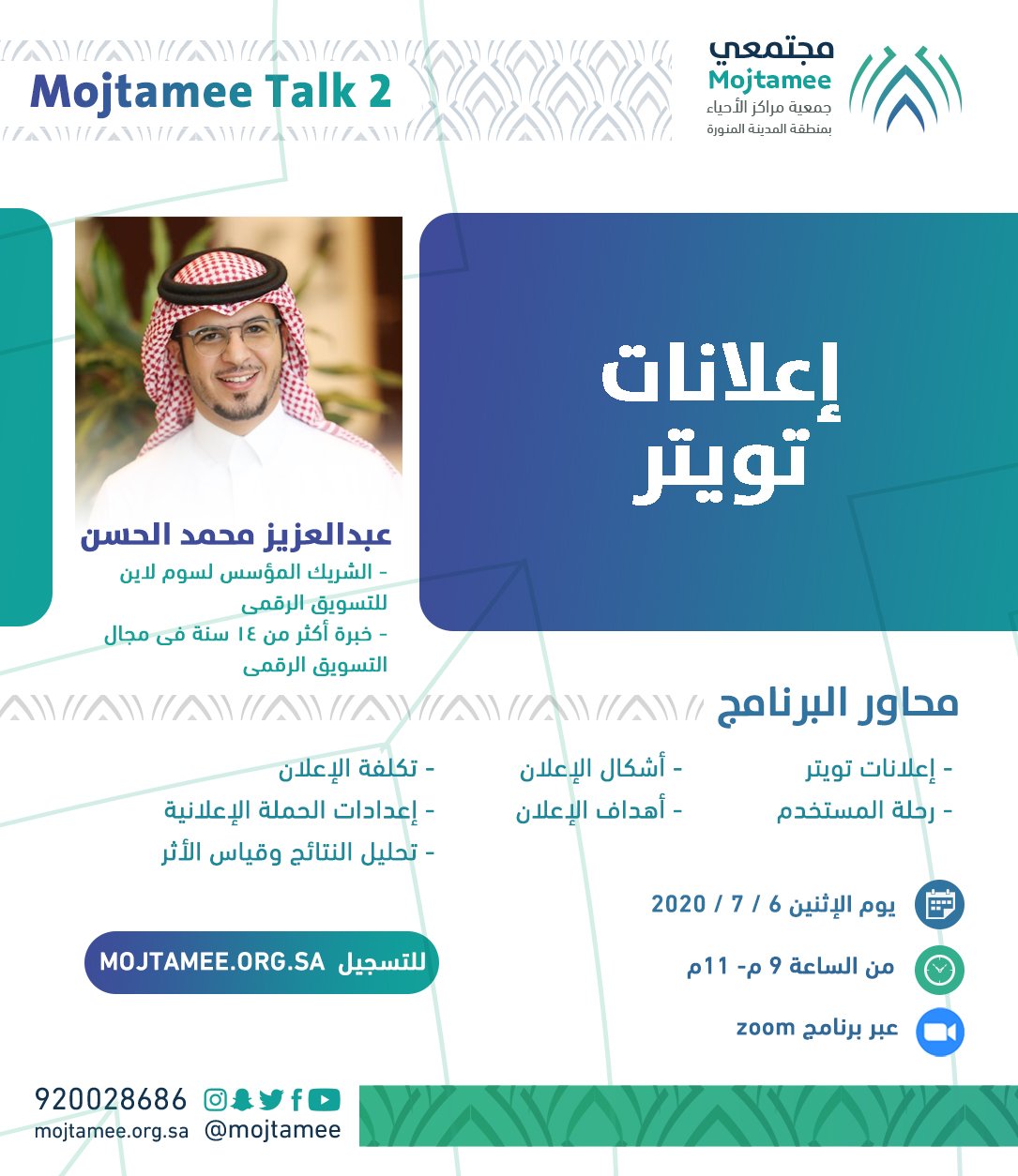 اختتمت مجتمعي المسار التقني التابع لملتقى Mojtamee Talk  عبر منصة زووم، وبحضور ٤٠٠ مشارك.