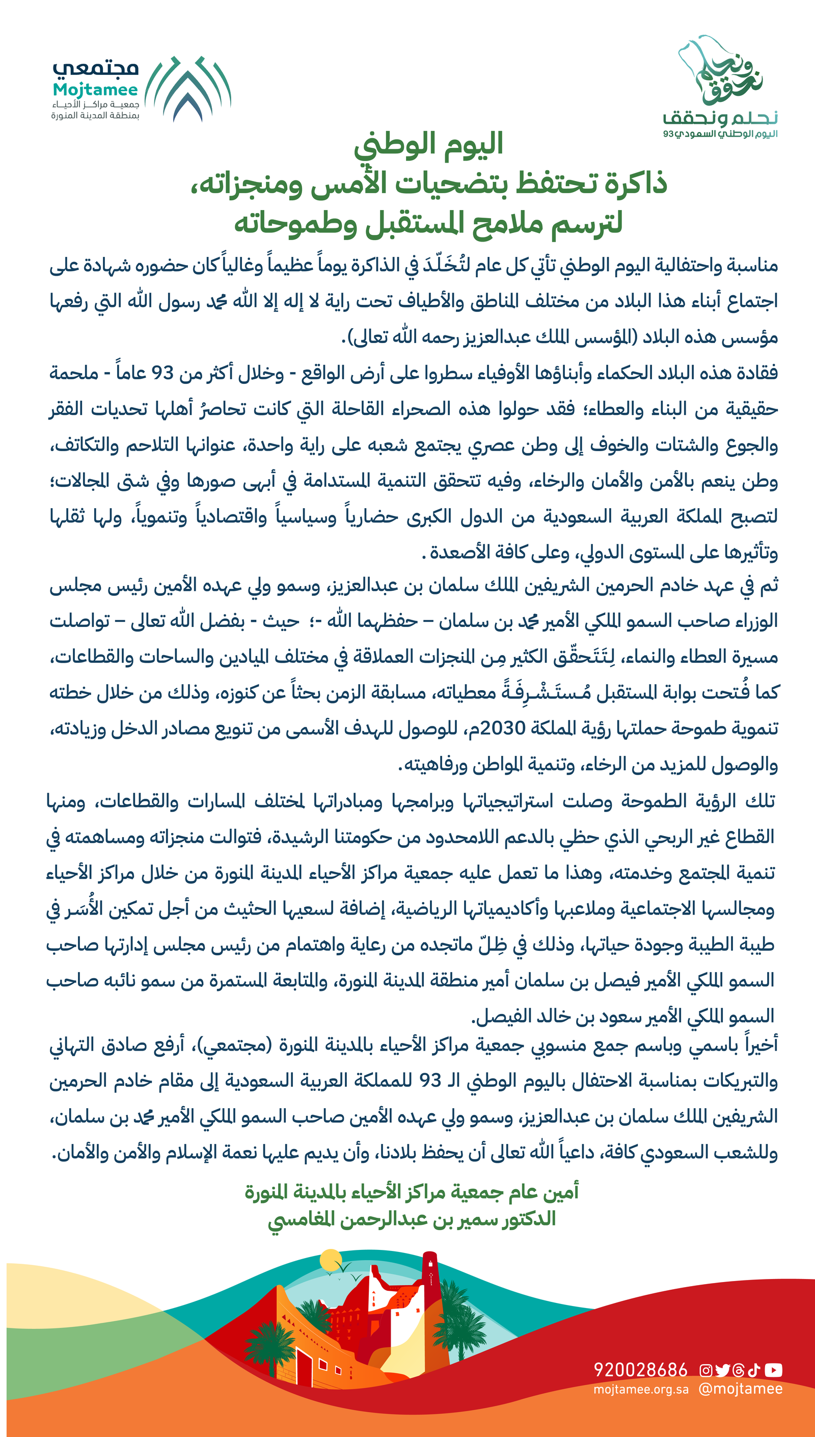 ‏كلمة أمين عام الجمعية د.سمير بن عبدالرحمن المغامسي بمناسبة ⁧‫اليوم الوطني السعودي 93